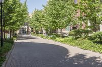 A picturesque residential area in Toronto, Canada. The classic architecture and tree-lined streets create a charming urban design. The walkways, driveways, and small roads are made of concrete and asphalt, adding to the city's charm.