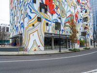 A vibrant cityscape in Portland, Oregon with modern architecture and urban design. Colorful graffiti art adorns the concrete streets, adding character to the bustling business district. A perfect depiction of city life in the Pacific Northwest.