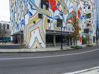 This is an image of a vibrant urban scene in Portland, Oregon. The photo captures the energy of city life with its colorful graffiti walls, bustling business districts, and artistic neighborhoods. The concrete streets and office buildings reflect the urban design of the area. In the foreground, a tree stands tall, providing a touch of nature amidst the concrete jungle. The clear sky and clouds overhead add to the overall atmosphere of the photo. This image encapsulates the vibrant and artistic spirit of Portland, Oregon.
