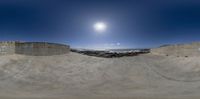 Coastal open space in Porto, Portugal, with a concrete wall leading straight down to the beach. Clouds scatter across the clear day sky. The coastline offers a serene view of the ocean.