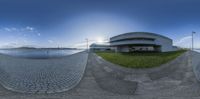 there is a fisheye lens photo showing how big this building is in the water