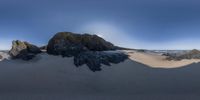 an image of a big beach view of a rock formation on top of the sand