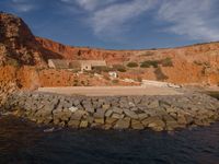 Aerial view of Portugal's stunning coastline, showcasing open spaces and concrete surfaces meeting the blue ocean. Clear skies and elevated perspectives highlight the coastal charms of Europe. Ideal day for sightseeing from a high position.
