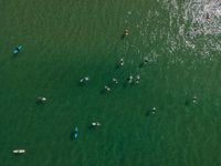 Aerial view of Portugal's stunning coastline, featuring expansive beaches and clear water surface. Captured from a high position, this coastal scene depicts Europe’s natural beauty on a clear day.