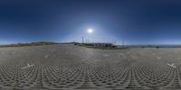 An open field in Portugal with a large solar array seamlessly blending into the natural environment. The clear sky and calm atmosphere create a serene and peaceful landscape. The grassy plain and azure horizon provide a stunning backdrop.