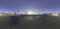 Dawn at a coastal basketball court in Portugal. Clear skies illuminate the asphalt surface and ocean view. A unique European landscape combining sport and nature.