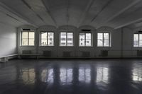 This stock photo showcases a hallway with a line of property windows, letting in natural light. The hallway features monochromatic elements, including dark wood flooring and a glass ceiling fixture. The symmetry of the layout creates an aesthetic appeal, while the tints and shades highlight the different tones of the monochrome scheme.
