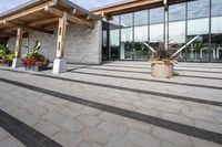 This is an image of a modern architecture building in Toronto, Canada. The sleek and minimalist design, with clean lines and open spaces, reflects the urban design and city life of Toronto. The concrete exterior of the building contrasts with the surrounding greenery and the walkways. The image captures the vibrant and dynamic atmosphere of the city, with people walking on the walkways and exploring the shopping mall. This photo represents the modern architecture and urban lifestyle in Toronto, Ontario.
