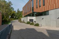 This is an image of a vibrant cityscape in Toronto, Canada. The photo showcases a high-rise residential building in a bustling neighborhood. The composite material facade and large windows create a modern and sleek aesthetic. The surrounding vegetation and trees add a touch of greenery to the urban environment. The cloudy sky casts shadows on the road surface, highlighting the dynamic nature of the city. This photo captures the urban design and real estate development of Toronto, showing the harmony between the suburban and public spaces. The elevated theater can be seen in the background, adding to the cultural atmosphere of the city.