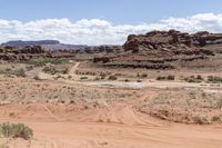Scenic Red Dirt Road Through Sandy Landscape with Rocks and Hills