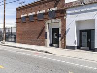 This stock photo captures a red fire hydrant on the corner of a street in a residential area of Los Angeles, California, USA. The fire hydrant stands next to a brick building, showcasing the city's unique architecture. The street is lined with asphalt and surrounded by other residential buildings, creating a typical urban neighborhood scene. The image, taken during the day, portrays the vibrant city life of Los Angeles. The brick building's facade features windows and a classic brickwork design. This photo is ideal for representing real estate, urban design, and city life themes.
