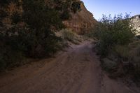 This stunning stock photo captures the beautiful landscape of Red Rock Canyon in Utah, USA. The photo showcases the breathtaking natural environment with red rocks, clear sky, and vegetation. A dirt road winds through the canyon, surrounded by mountains and towering bedrock walls. The road surface consists of gravel and cobblestone, creating a rugged terrain. The image depicts a peaceful day in North Wash, offering a serene and picturesque view for nature enthusiasts.