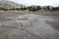This is an image of the rugged desert landscape in Utah, USA. The photo captures the stunning red rock formations and canyons of the San Rafael Swell area. The open space is dotted with grass and vegetation, contrasting with the rocky surface and outcrops. The mountain hills and bedrock formations create a visually striking scene. The clear blue sky with scattered clouds adds to the natural beauty of the day. This photo represents the unique and beautiful nature of Utah's highland desert.