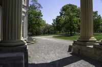 A picturesque view of a historic castle in Ontario, Canada. The castle is surrounded by lush green vegetation and is a popular tourist attraction. The clear sky adds to the beauty of the landscape.