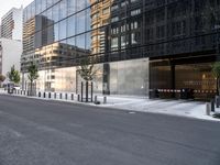 A view of a modern architectural building in Berlin, Germany. The clear sky contrasts with the metal wall and glass windows. The surrounding neighborhood is filled with trees, creating a vibrant urban oasis.
