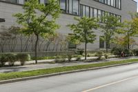 This is an image of a modern architecture office building in the business district of Toronto, Canada. The tall building stands in contrast to the surrounding residential area and trees. The city streets are lined with asphalt roads, curbs, and vegetation. The image captures the essence of urban life and urban design in Toronto. The office building's windows reflect the daylight, symbolizing a bustling business environment. This photo represents the intersection of real estate, infrastructure, and city life in Toronto's business district.