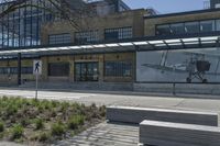 This is an image of a modern office building in Toronto, Canada. The building features a sleek facade with large windows and a brownstone brick exterior. The surrounding area is a bustling business district with paved roads and sidewalks. The clear sky above provides a perfect backdrop for the urban design and architecture. The image showcases the blend of art and real estate in the city. This photo represents a typical day in Toronto, where modern architecture meets business and creativity.