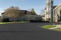 This stock photo features a residential area in Tennessee with a clear sky. The image shows a charming town with beautiful architecture and well-maintained roads. The houses and buildings in the area are surrounded by open spaces and lush green trees. The town also features a spacious plaza for recreational activities. In the distance, you can see a picturesque castle on the surface of the landscape. The clear sky above is adorned with contrails, adding to the scenic beauty of the town. This photo captures the essence of peaceful suburban living in Tennessee, making it an ideal image for various purposes such as tourism, property listings or architectural projects.