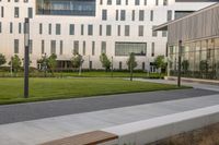 This image showcases modern architecture in downtown Toronto, Canada. The city skyline is dominated by high-rise buildings and office towers, surrounded by a vibrant urban landscape. The foreground features a mix of residential areas, public spaces, and commercial properties. Lush green grass, trees, and vegetation provide a pleasant contrast against the concrete surfaces. The clear skies and well-designed infrastructure create a thriving business district. This photo captures the essence of urban design and the dynamic atmosphere of Toronto.