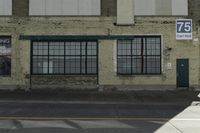 This is an image of a residential neighborhood in Toronto, Canada. The photo captures the urban design and architecture of the area. The buildings feature various architectural styles, with brick facades and prominent windows. The road surface is made of asphalt and there are curbs along the sidewalk. In the distance, a warehouse can be seen, adding an industrial touch to the suburban landscape. The grey color palette and the tints and shades of the buildings create an interesting visual effect. This photo represents a typical day in a residential area of Toronto.