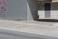 This is an image of a modern residential building in Toronto, Canada. The building has a sleek design with a rectangular shape and a composite material exterior. It is surrounded by urban vegetation and trees, providing shade for the suburban area. The grey asphalt road surface leads to a tunnel entrance, and a driveway with a tar road surface crosses a pedestrian crossing. This photo captures the essence of urban design and city life in Toronto, Ontario.