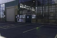 A modern architecture office building in Toronto's suburban area. Clear sky and hard shadows create a dramatic effect. The building's facade features glass windows and mesh net flooring. A perfect blend of urban design and open space.
