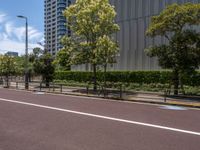 empty road with white lines on the streets of city area against cloudy blue sky on a sunny day