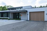 This image showcases a modern garage with parking areas on either side in Toronto, Canada. The garage features a large door and windows, blending seamlessly with the sleek and contemporary architecture of the surrounding buildings. The asphalt driveway and parking lot provide a smooth surface for vehicles. This property is located in the heart of Toronto's business district, making it an ideal location for office buildings, museums, and residential villas. The clear sky and tree-lined streets add to the vibrant atmosphere of the area. This photo captures the perfect balance between functionality and modern design.