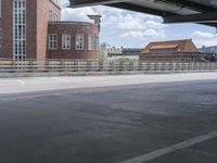 A person is enjoying a bike ride on a bridge in Berlin, Germany. The cityscape is filled with modern architecture buildings, characterized by lots of windows. The clear sky and fluffy clouds provide a beautiful backdrop. The road, made of asphalt, runs alongside the buildings and offers a smooth riding experience. The urban environment showcases a mix of classic and modern architecture, with facades, roofs, and windows adding to the overall visual charm. The concrete streets and parking lots in the city add to the organized and efficient transportation system. This image portrays the energetic and vibrant atmosphere of Europe's lively capital, Berlin.