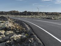 a paved road in the middle of nowhere with rocks on both sides of the road