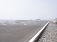 This stunning stock photo captures a paved road winding its way up a mountain in the desert area of Tenerife, Spain. The image showcases the beautiful landscape, with the rugged mountain peaks contrasting against the clear blue sky. The road, made of asphalt, cuts through the arid terrain, surrounded by nature and untouched by civilization. The day time of day adds a sense of tranquility to the scene, as the soft dawn light casts a warm glow over the surroundings. A light fog hovers above the road, creating a mysterious and ethereal atmosphere. The white lines on the road surface guide the way, leading travelers through the breathtaking scenery. This photo is perfect for illustrating the concept of exploration, adventure, and the journey of life.
