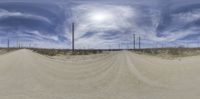 A dirt road stretches through California's Mojave Desert, lined with gravel and surrounded by sand. Clear skies provide a backdrop for this rural landscape near Los Angeles.