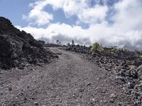 A rugged, rocky road in Tenerife, Spain. Surrounded by a barren desert landscape, the road cuts through the mountains. Clear skies and sparse vegetation create a stark contrast. Exploring the off-road track, one encounters a lone tree. An epic journey through Europe's rugged terrain.