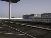 An expansive parking lot surrounded by buildings and illuminated by a street light. The wide road surface is perfect for racing and rolling. Urban design creates a spacious and empty city landscape.