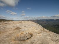 This stunning photograph showcases a rugged mountain landscape with a breathtaking view of cumulus clouds in the sky. The image captures the natural beauty of the open space during the day, with hills, bedrocks, and outcrops adding texture to the terrain. The rocky formations create a unique and captivating panorama, offering an unforgettable overlook. The horizon stretches out, providing an expansive and awe-inspiring sight of this majestic mountain range.