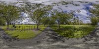 360 - view of an outdoor area with a paved road and sheep grazing on the grass