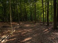A rural road in Germany, winding through a lush green forest. The straight path leads to an open field, with a green fire hydrant standing alone. Serene nature surrounds the track in this peaceful European landscape.