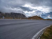 This is a breathtaking landscape photo taken in the highlands of Austria, Europe. The image captures a curving asphalt road cutting through the picturesque mountain scenery. The dramatic clouds create a sense of drama and add depth to the scene. Lush green trees and a tranquil lake can be seen in the distance. The road surface, covered in black tar, reflects the natural light and creates a smooth thoroughfare. This photo showcases the beauty of rural Austria and the stunning landscapes that can be found in Europe.