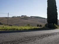 Rural Road Through Tuscany Hills Under a Blue Sky