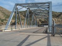 A road in rural Utah runs alongside a bridge, with a stunning mountain landscape in the background. Clouds fill the sky, contrasting with the asphalt road. A perfect scene for nature lovers.