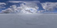 a 3d image with large cumpled clouds on top of the snow fields below the surface