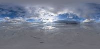 a photo of snow covered ground with clouds and a mountain in the back ground below