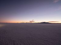 A stunning view of Bonneville Speedway in Utah at dawn. The open space is surrounded by dark desert landscape and mountains. The clear sky enhances the natural beauty of the salt surface.