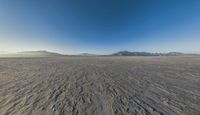 Break of day in Utah's Salt Lake City. Landscape of salt lake and desert mountains under a clear sky. Nature's packshot with open space and pure salt formations at dawn.