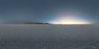 The break of day in Salt Lake City, Utah, reveals a stunning landscape. The clear sky and open space showcase the nature of the desert. Sun visible in the dawn sky, bathing the Salt Surface in radiant sunshine.