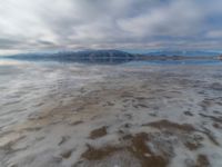 Beautiful landscape of Salt Lake City, Utah. The open space with mountains in the background creates a picturesque desert scene. The sun visible on a sunny day enhances the natural beauty of the salt lake.