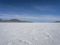 This is an image of a serene winter landscape in Utah, USA. The photo captures the snow-covered mountains against the clear blue sky, creating a stunning contrast. In the forefront, there is a calm lake reflecting the beautiful horizon. The open space of the desert plains and the vastness of the ocean add to the natural beauty of the scenery. Salt Lake City can be seen in the distance, with the salt surface of the lake glistening in the sunlight. This photo represents the tranquility and natural wonders of the Utah highlands.