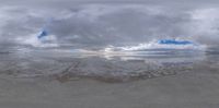 Panoramic view of Salt Lake in Utah under a sunny sky. Open desert landscape with visible sun and distant mountain backdrop. Nature’s beauty encapsulated in sunshine and salt.