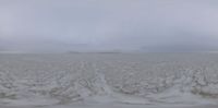 Sunny day at Utah's Salt Lake reveals an expansive desert landscape. Mountains rise in the distance, embracing the salt flats. Vibrant sunshine casts light on the open space, highlighting the beauty of this natural wonder.