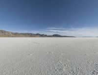 This stunning image captures the natural beauty of Utah's desert landscape. The clear sky above showcases the calm and serene surroundings. The mountain range in the distance adds depth and texture to the scene. The reflection of the blue sky and clouds can be seen on the calm surface of the water, creating a peaceful and tranquil atmosphere. This photo represents the emotional connection one can feel with nature in Utah's highland coastal area. The dry and arid conditions of the desert and the sparkling salt surface of the lake create a unique and breathtaking natural environment.